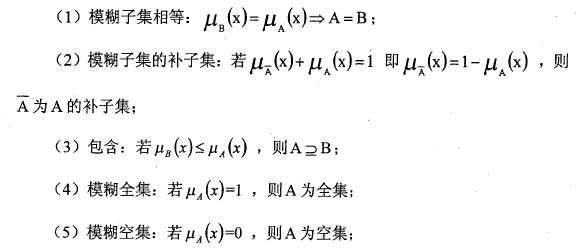 對模糊集合運算時,注意要有同等個數(shù)的集合元素參加運算。模糊集合的運算可分為代數(shù)運算和邏輯運算,主要有以下幾種:
